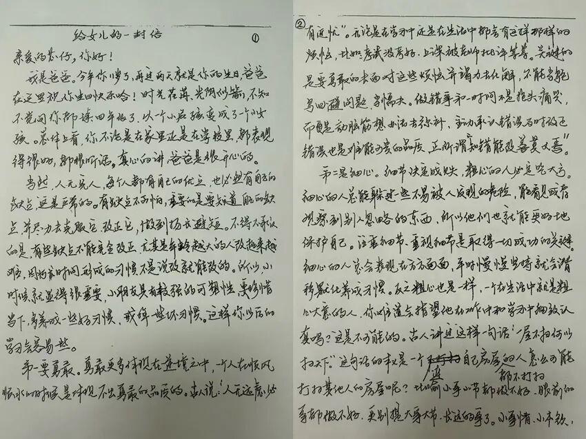 晋兆东写给女儿11岁生日的信(节选)。人民网记者 张玉琳摄