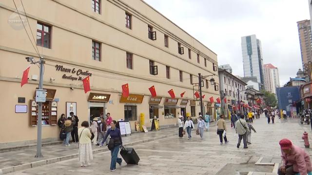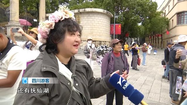 四川游客:“我们10月5日到的,这次来云南旅游到了弥勒的太平湖公园,还有抚仙湖,今天到昆明老街。我已经来云南很多次了,我很喜欢这个地方,真的很漂亮。”