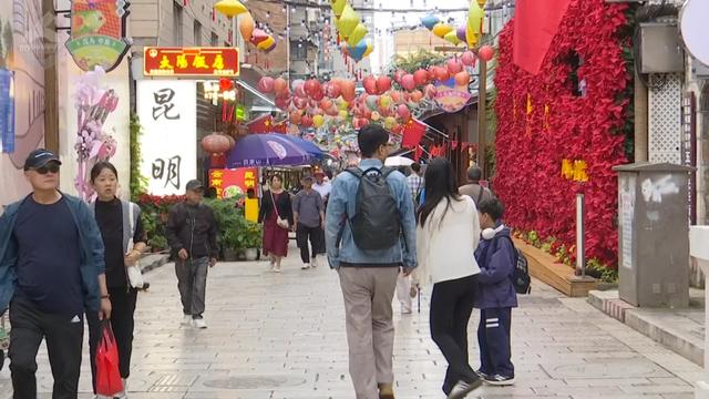 东北游客:“错过高峰期,错峰出行,我们想去大理、丽江,有时间的话再去西双版纳这几个地方。我们第一站就来昆明老街,昆明老街比较有特色,我是公休,她是请假,我们过来玩了5到6天了。”